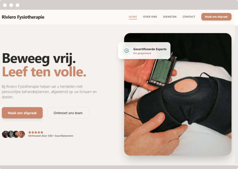 Een rustige en professionele website voor een fysiotherapiepraktijk. Gericht op vertrouwen, persoonlijke begeleiding en overzichtelijke informatie.